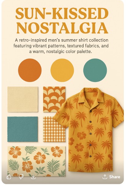 Reformatted Mood Board Description for a Men’s Shirt concept under the “Sun-Kissed Nostalgia” theme, following your provided structure: